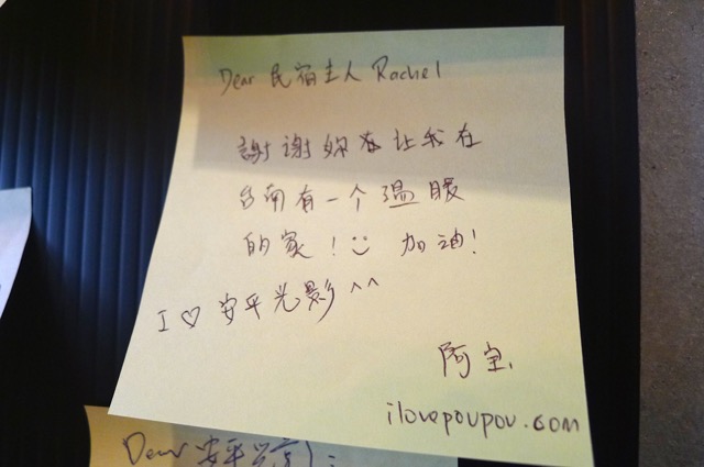貼心的民宿主人在大廳的桌上準備了有關臺灣的旅游書籍,還有咖啡,綠茶。